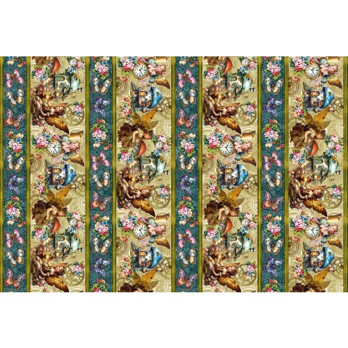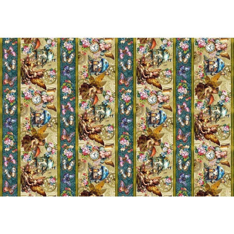 The Gearlit Fairies collection invites you into a dreamy Victorian world where fairy tales meet the magic of steampunk. Each pattern tells the story of whimsical fairy girls with butterfly like mechanical wings, dressed in corset gowns adorned with gears, goggles, and clockwork details. Set against a backdrop of brass-toned gnome like houses, velvet damask florals, and antique accessories, these characters feel as though they’ve fluttered straight from a forgotten storybook. The painterly style brings every detail to life from glinting metallic accents to soft Victorian blooms.