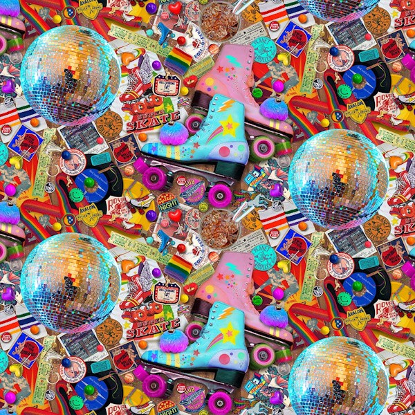 As a young girl in the late ‘70s, I took roller skating lessons and fell in love with the roller rink! I have the BEST memories from when my whole class from school would head out for “Skate Night”, disco lights spinning and favorite songs echoing throughout the air. It was such a blast! Laughter, whirling glitter wheels, and the thrill of skating side-by-side with my friends made those nights unforgettable. The Retro Skate Night collection was born from those magical memories. I hope these designs let you step back into that sparkling, carefree moment in time and take one more spin around the rink!