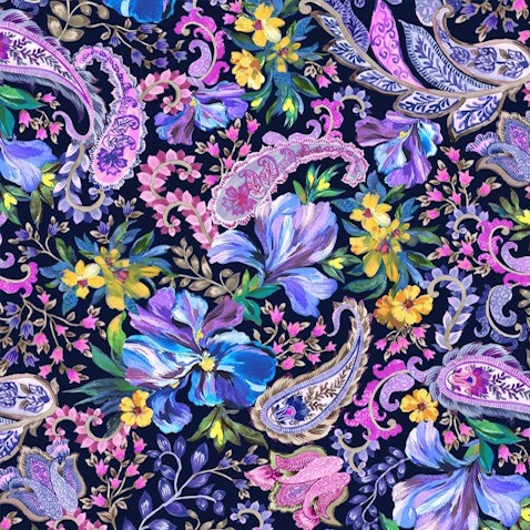 Brush of Iris captures the serene elegance of blooming irises in deep watercolor hues of blue and violet. Delicate paisleys and silky ikat textures intertwine with painterly petals, creating a collection that feels both timeless and graceful. Each design reflects the gentle rhythm of brush and bloom — a harmony of art and nature, rich with quiet beauty and sophistication. Perfect for those who find poetry in color and texture.