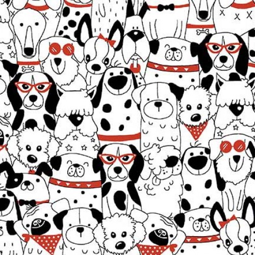 Bow-Wow Wow will have you wagging your tail. This 26 piece red, white, black and gray group is filled with pugs, dalmations and all kinds of pups. If you’re a dog lover, this collection is for you!