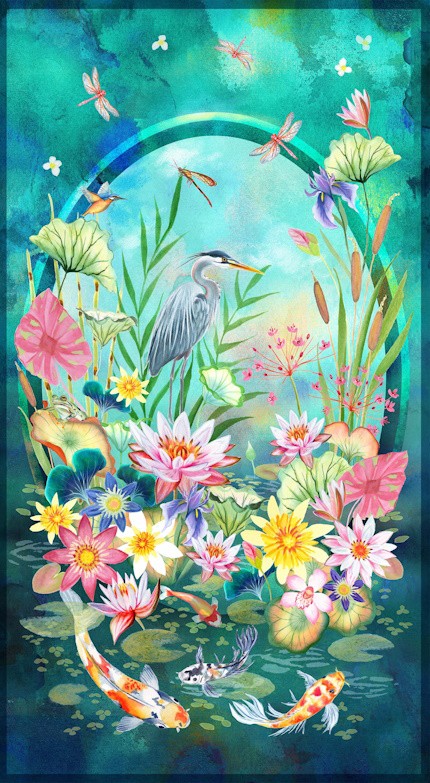 One of my earliest memories is of my small garden pond, where I spent many happy hours in wonder at the whole world contained within. The “Pond of Serenity” collection was my opportunity to explore this idea further, and the vibrant flowers, plants, and animals that give a pond life.