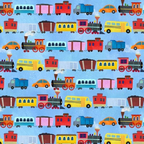 When my daughter was little, she loved playing with trains. She would meticulously build tracks in endless configurations around her playroom. Her always-growing collection of train cars would snake around her carefully designed tracks, navigating through loop-de-loops and over bridges. Equally important were all the little accessories — the characters, trees, and buildings that added to her imaginary town. My daughter’s childhood fascination with trains inspired me to create a collection that I knew she would have loved at that age. The bigger panel invites children to trace over the tracks using their toy trains and cars. I incorporate a lot of color and geometric shapes into my illustrations, aiming to make the vehicles as vibrant and playful as possible.