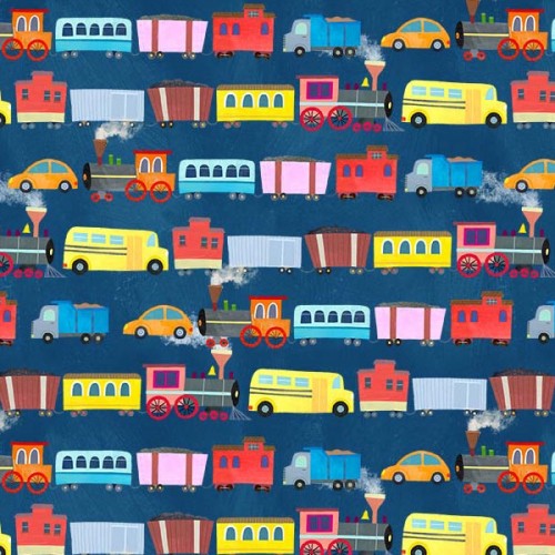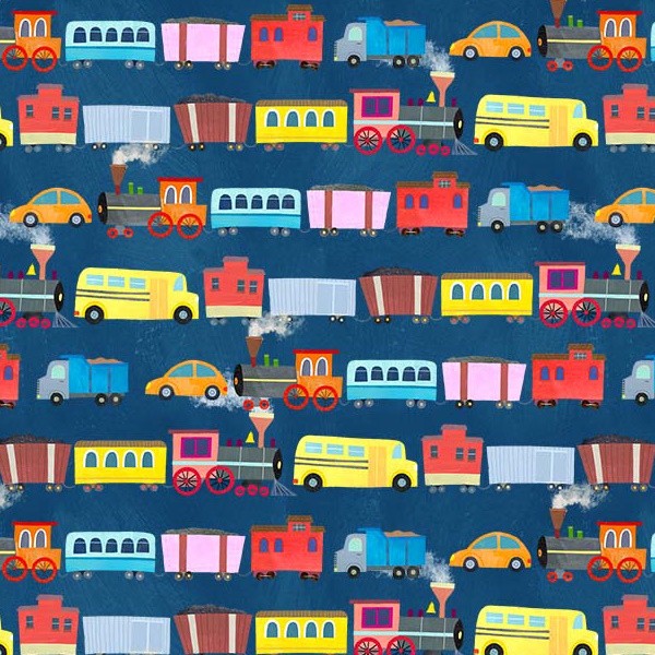When my daughter was little, she loved playing with trains. She would meticulously build tracks in endless configurations around her playroom. Her always-growing collection of train cars would snake around her carefully designed tracks, navigating through loop-de-loops and over bridges. Equally important were all the little accessories — the characters, trees, and buildings that added to her imaginary town. My daughter’s childhood fascination with trains inspired me to create a collection that I knew she would have loved at that age. The bigger panel invites children to trace over the tracks using their toy trains and cars. I incorporate a lot of color and geometric shapes into my illustrations, aiming to make the vehicles as vibrant and playful as possible.