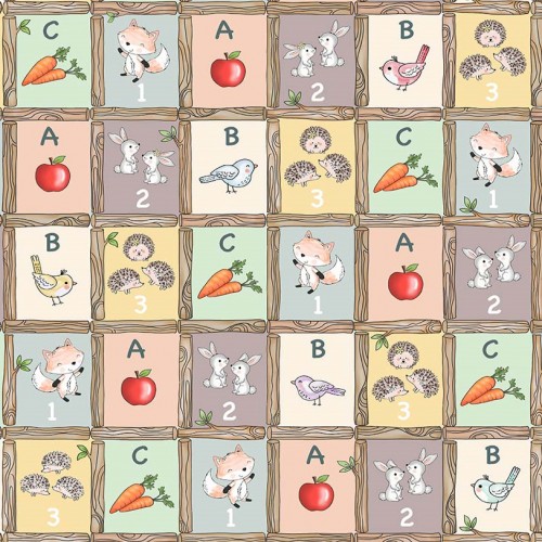 Woodland ABC & 123 invites little dreamers into a gentle forest world where a curious fox, cuddly bear, and jolly mice play among letters and numbers. Surrounded by soft wildflowers, mushrooms, and berries, each scene feels like a page from a bedtime story. In warm peach and hazy pastel tones, this collection captures the tender wonder of childhood learning — a sweet lullaby of nature, friendship, and imagination for your little one’s cozy room.